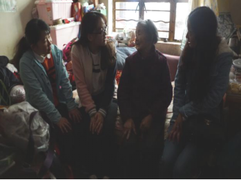 上圖為團(tuán)員們到孤寡老人家開展活動